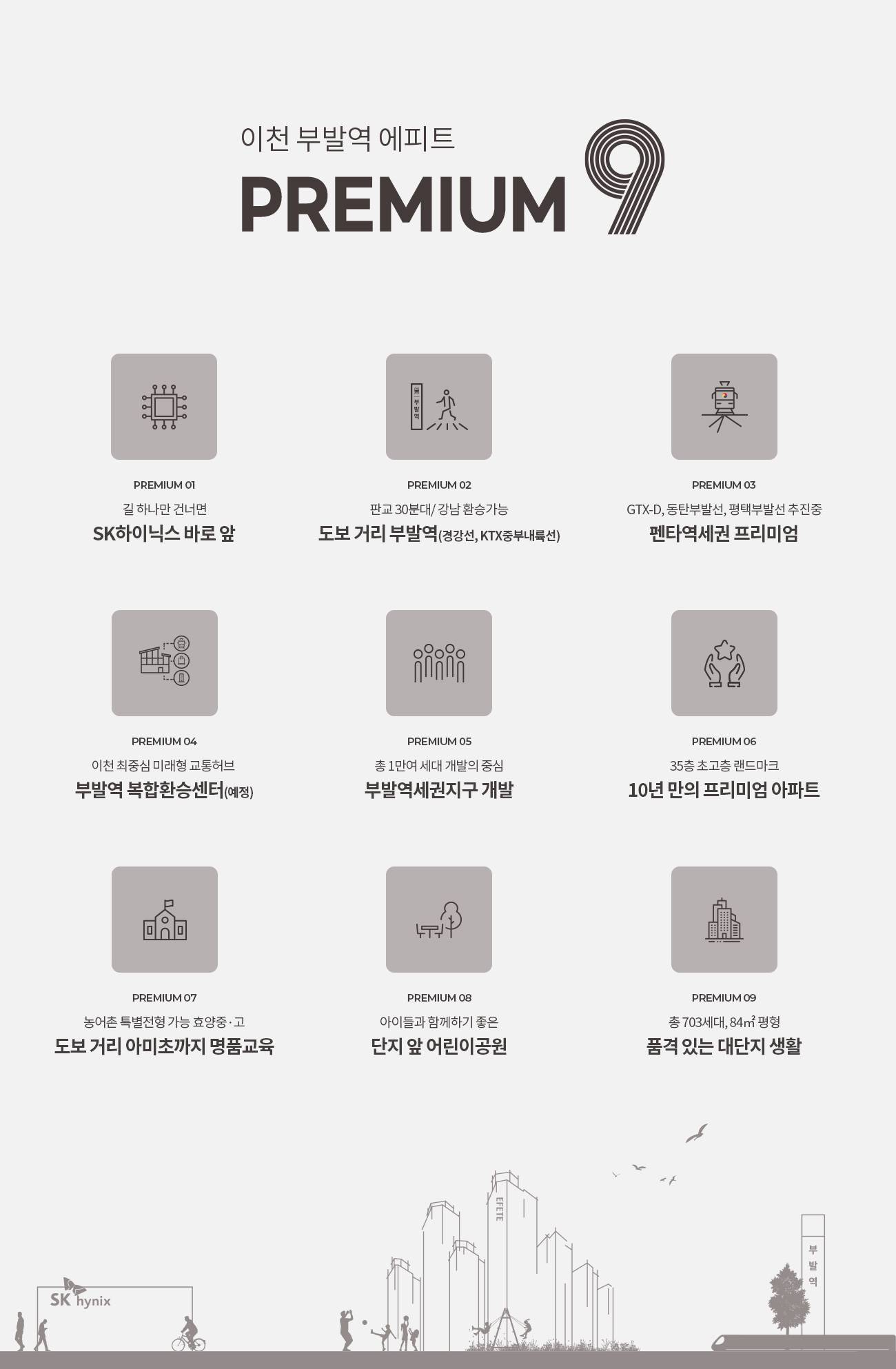 서수원의 새로운 주거 중심 에피트 브랜드가 선보이는 압도적인 주거 랜드마크 변화하는 서수원의 비전과 에피트만의 진화된 주거 철학이 만나 지역을 대표할 새로운 프리미엄 라이프의 기준을 제시합니다. 쾌속 교통의 허브 입지 수원역 및 주요 도로망을 통한 광역 이동의 편리함 인근의 편리한 교통 인프라와 다양한 도로망을 활용하여 수원 시내는 물론 서울 및 수도권 주요 도시로 빠르게 연결됩니다. 삶의 질을 높이는 에듀&에코 라이프 도보권 안심 교육 환경과 쾌적한 녹지 공간의 조화 아이를 위한 안심 학군과 인근의 풍부한 공원 시설을 통해 교육과 힐링을 동시에 누리는 최적의 주거 환경을 갖추었습니다. 감각적이고 실용적인 특화 설계 입주민의 라이프스타일을 고려한 효율적인 평면 구성 채광과 통풍을 극대화한 남향 위주 배치와 넉넉한 수납 공간 및 혁신적인 설계로 주거 만족도를 높였습니다. 미래 가치가 기대되는 서수원 비전 대규모 개발 호재와 함께 상승하는 단지의 희소가치 주변의 지속적인 개발 사업과 인프라 확충을 통해 시간이 흐를수록 더해지는 높은 자산 가치와 자부심을 선사합니다. 품격 있는 커뮤니티 공간 입주민의 건강과 여가를 책임지는 다채로운 편의시설 단지 내 마련된 고품격 커뮤니티 시설을 통해 이웃과 소통하며 일상의 에너지를 채우는 품격 있는 생활이 시작됩니다.